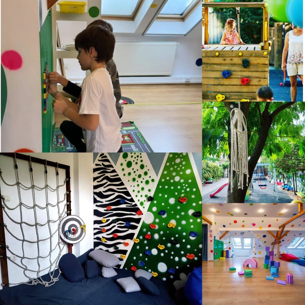 Copiii au la dispoziție leagăne, locuri de cățărat, trambulină, nisipar, se pot antrena la coșul de baschet, tir cu arcul sau fotbal.