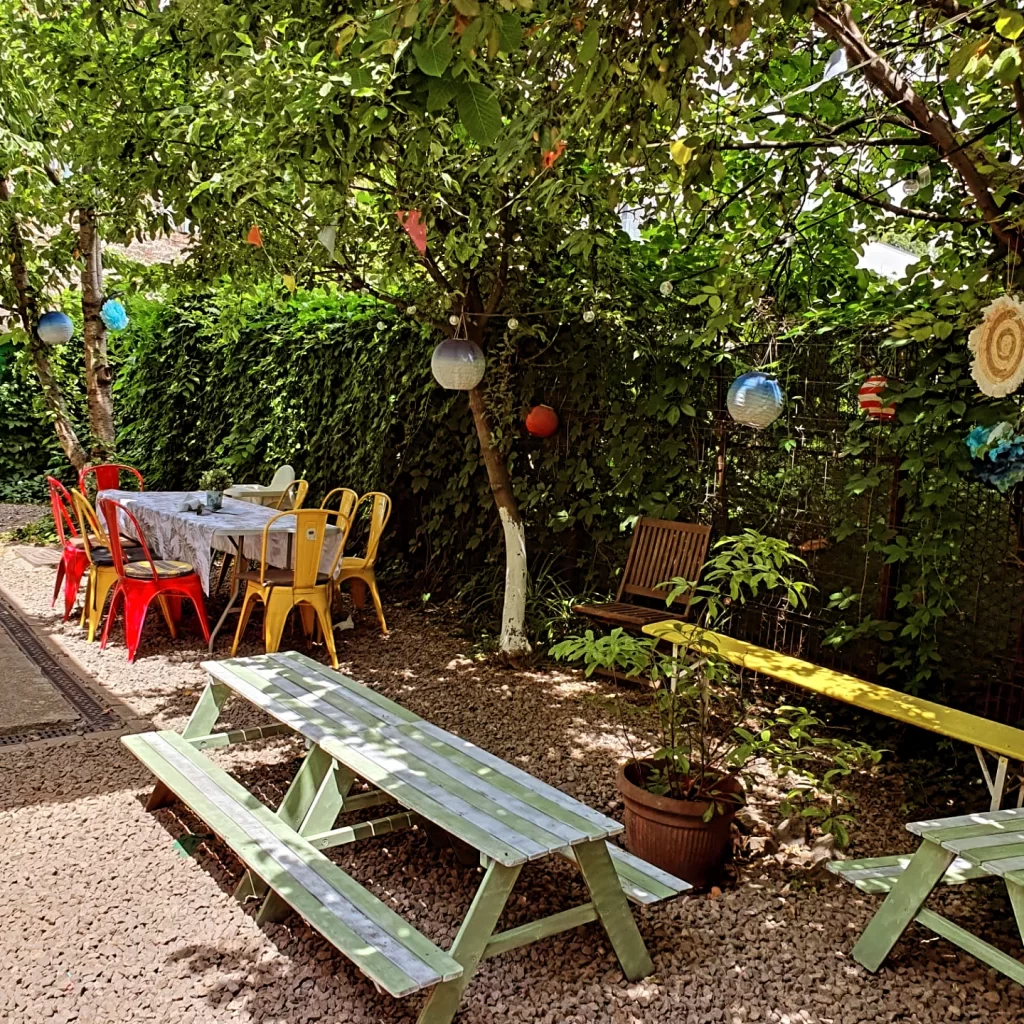 Grădina spațioasă de 700 mp, cu multă verdeață, poate găzdui evenimente de până la 60 de persoane. Interiorul poate primi 25 adulți plus 20 de copii.